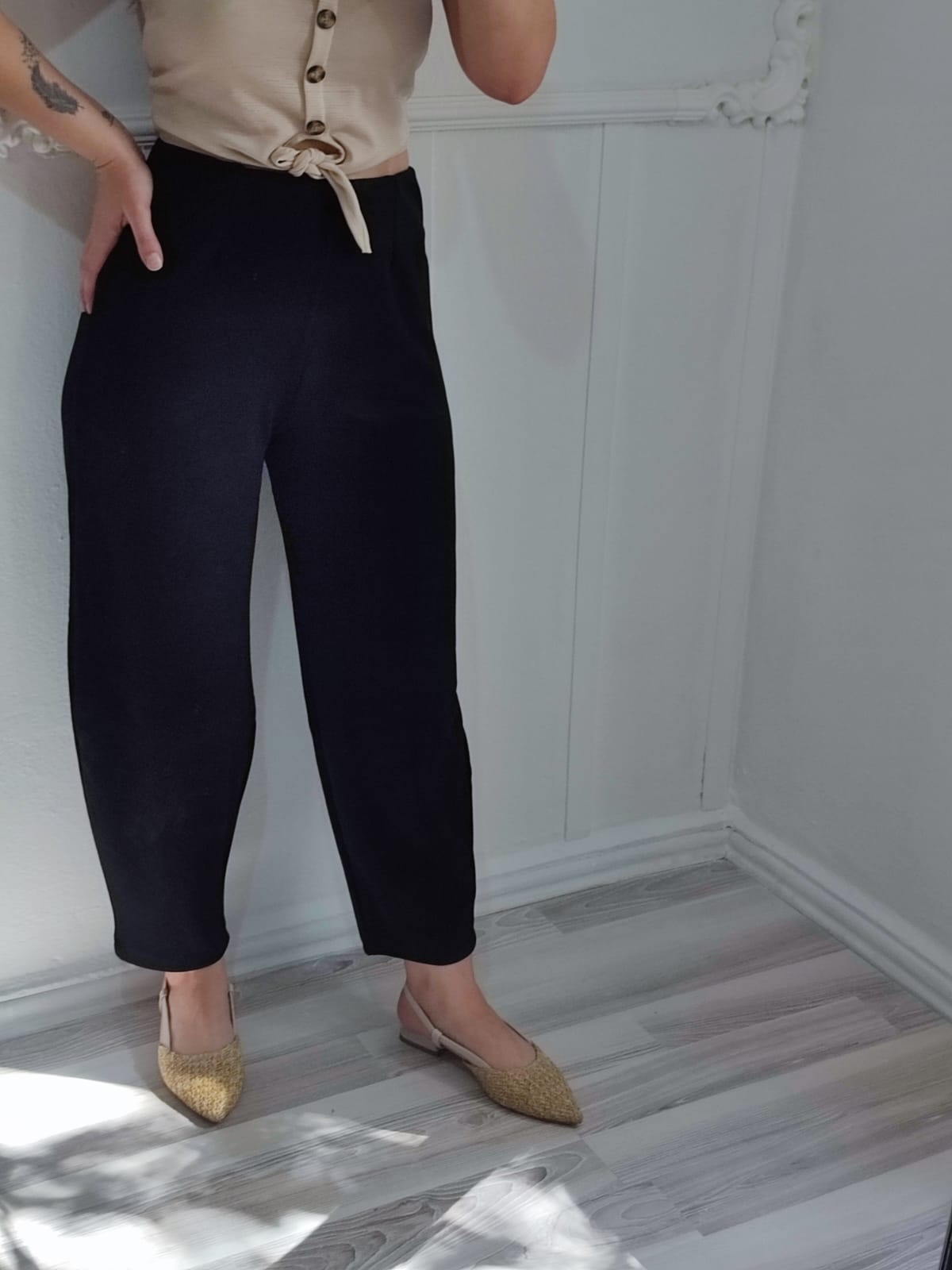 Şık ve konforlu tasarımıyla dikkat çeken Crep Kumaş Balon Pantolon, tam kalıp formu ve likralı yapısıyla rahat hareket imkânı sunar.