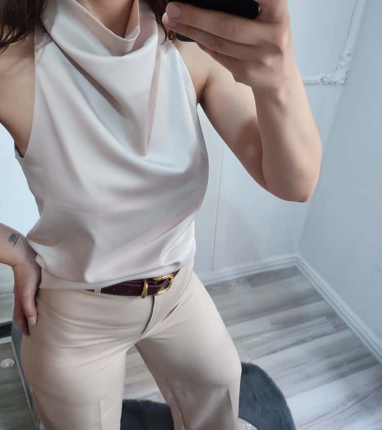 Zarafeti sade tasarımla birleştiren Saten Dökümlü Kadın Bluz, dökümlü formu ve parlak saten yüzeyiyle her stile uyum sağlar.