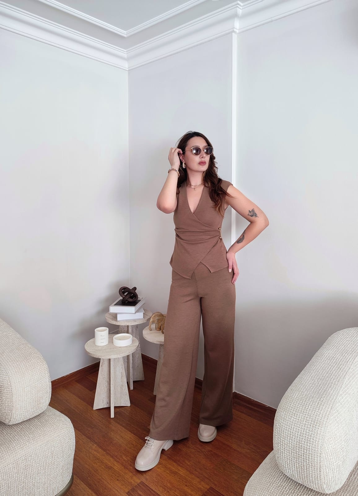 Rahatlığı ve zarafeti buluşturan Triko Takım, yumuşak dokulu esnek kumaşı ile gün boyu konfor sağlar.